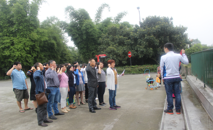 最后,在雄伟的飞行广场前,支部党员整齐列队,面对鲜红的党旗,重温了入党誓词。