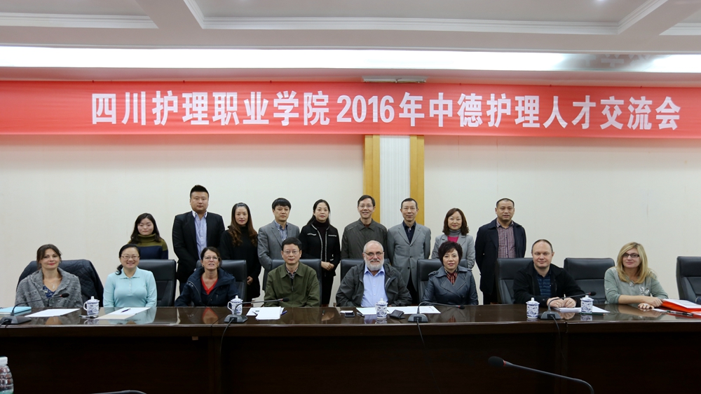 11月1日,巴登-符腾堡州斯图加特市德中友协兼德中福利会主席莱纳·多尔德先生来访我院,随行的有巴登-符腾堡州农村地区及消费者保护部局长格利特·普齐安女士,诺伊·新乌尔姆应用科学大学健康管理系西尔维娅·沙夫迈斯特博士,特许护理经济师、弗莱堡福音新教老年护理专科学校校长安德雷亚·西格·乌茨女士,格诺帕特-老年合作社及BZV居民定期护理项目主任克里斯蒂娜·罗特维恩·皮皮塔女士,技术-特许企业经济师米夏埃尔·迈耶尔先生,学者、酒店经营商兼旅游经济师兰仙·艾泽切尔女士等多位德国专家。学院党委书记江涛、院长张先庚及班子成员对多尔德先生一行的到访表示热烈欢迎,并参加交流会。四川省人民对外友好协会项目促进部部长陈继华,四川省人民对外友好协会德国项目顾问杨宇成特别出席会议。会议由副院长姚永萍主持。
