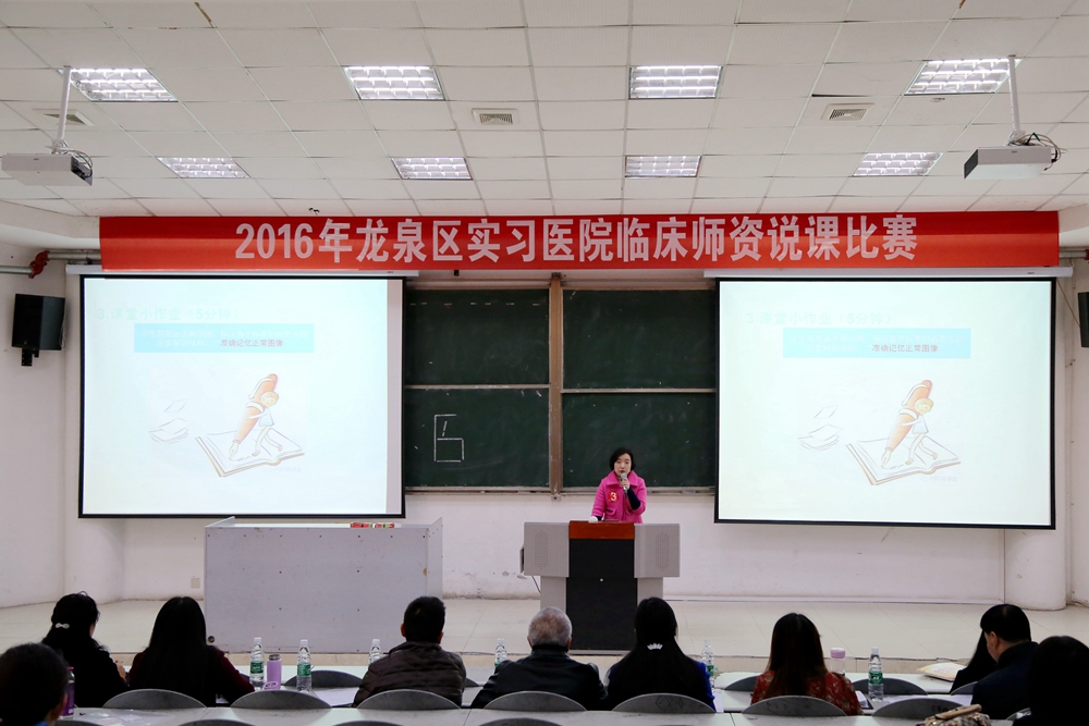 为推行国家现代学徒制教学改革试点项目,着力提高全区范围内各实习医院临床医务人员的带教能力与水平,充分展现临床带教人员的带徒技艺、带教风采和医院的整体实践教学实力, 11月12日,我院与龙泉驿区医师协会共同举办了龙泉驿区各实习、见习医院临床实践教学师资说课比赛。