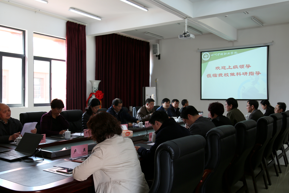 3月18日,四川省科技厅巡视员周孟林带领省科技厅社会发展处高量处长、基础研究处华莉副处长来学院德阳校区调研指导科研工作。德阳市科学技术和知识产权局何升元局长、市教育局尹艳局长、市卫生计生委杨兆华主任及有关人员陪同调研,院校全体领导班子成员、部分中层干部和科研骨干代表参会,会议由学院党委书记江涛同志主持。