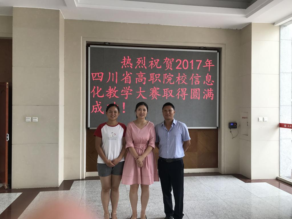 8月27日,陈薇嘉、刘玉雪、周跃根三位老师代表我院参加2017年四川省高等职业院校信息化大赛,经过激烈的角逐,我院参赛作品《肌肉注射》从决赛64件参赛作品中脱颖而出,荣获金奖,入围国赛。