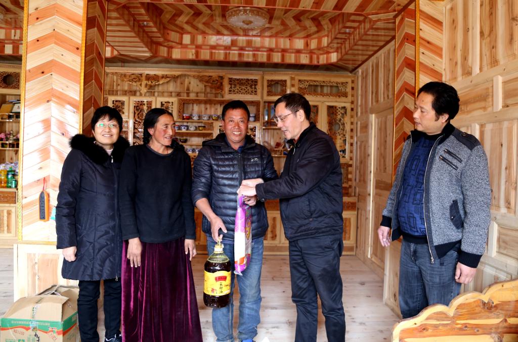 张书记一行抵达我院扶贫点修卡村后,首先与吾伊乡乡长张思齐、我院驻村干部袁昌华、修卡村村干部及村民代表尕尔穷家进行了座谈。座谈会上,我院驻村干部袁昌华同志从三个方面对2017年扶贫计划的执行、实施情况进行了汇报:一是积极推进产业扶贫,学院保障扶贫投入,帮助村民开发羊肚菌大棚种植、蔬菜大棚种植示范项目、特色种植项目紫色土豆种植及母牦牛的养殖,目前已初见成效。二是积极推进教育扶贫,学院立足“扶贫必扶智”,设立学生助学金、奖学金、贫困学生生活补助、“9+3”学生绿色通道等方式,鼓励村子里的孩子上学读书,就学人数已由原来的20余人增至50余人。三是不断加大健康扶贫力度,通过 “健康讲堂”“家庭小药箱”、“巡诊义诊”、“建立毕业生健康服务队”等形式,为村民提供长期的健康与教育服务,增进村民健康,消除因病致贫。