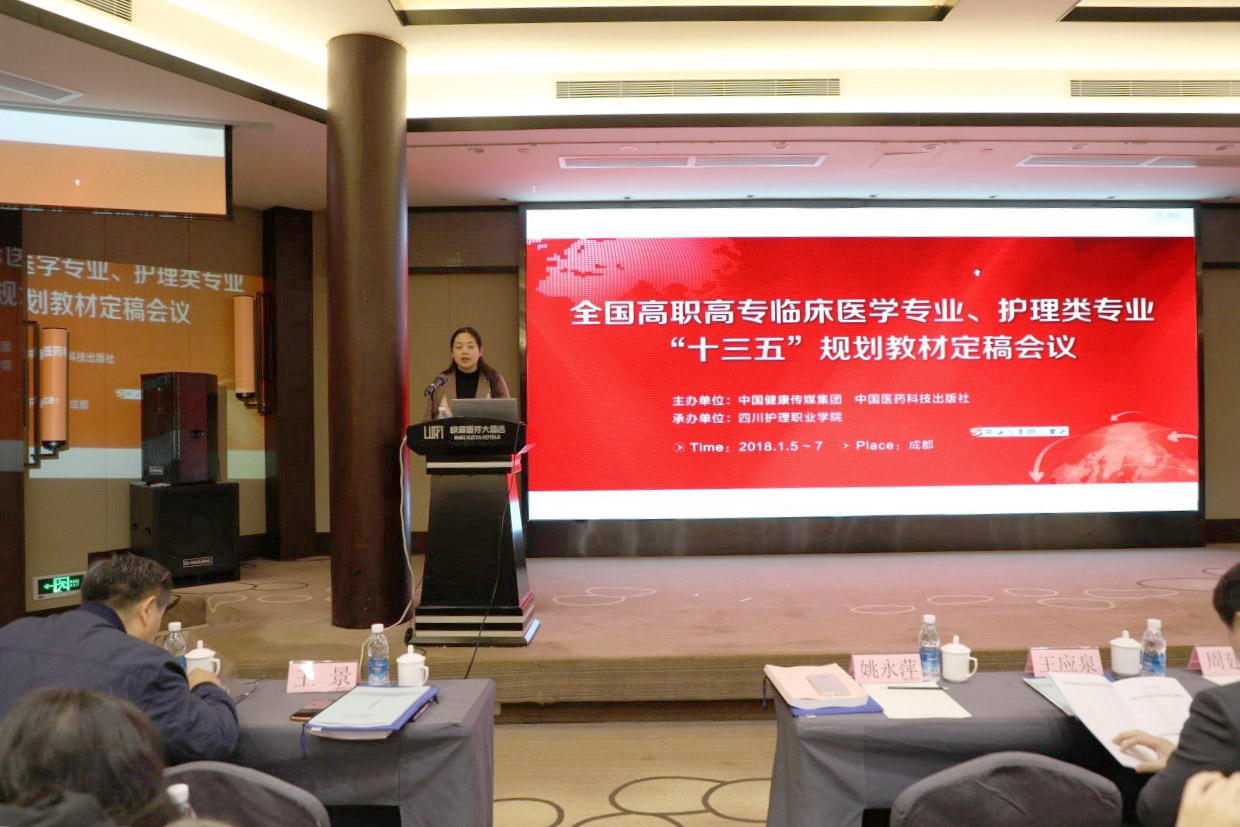 1月6日,由中国健康传媒集团、中国医药科技出版社主办,我院承办的全国高职高专临床医学、护理类专业“十三五”规划教材定稿会议在成都召开。全国63所院校,29门教材的主编、副主编和编委共220余人参加会议。中国医药科技出版社教材部门主任和编辑出席会议。会议开幕式由我院教务处副处长王景主持。
