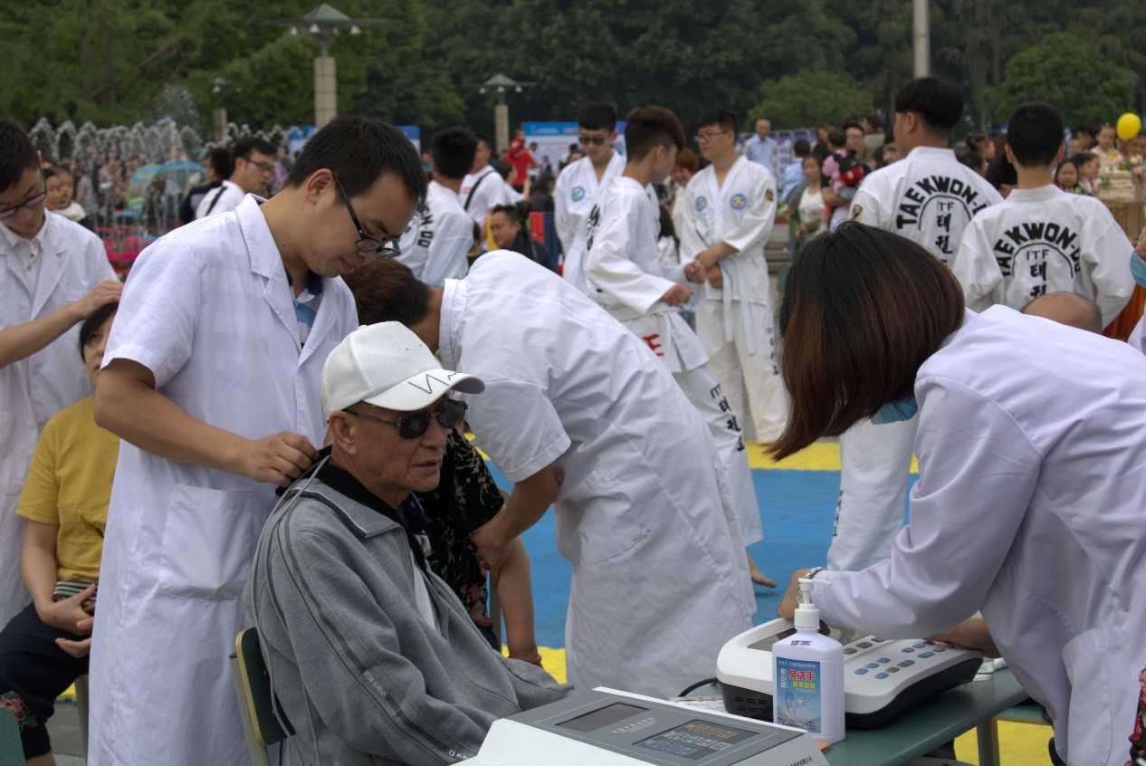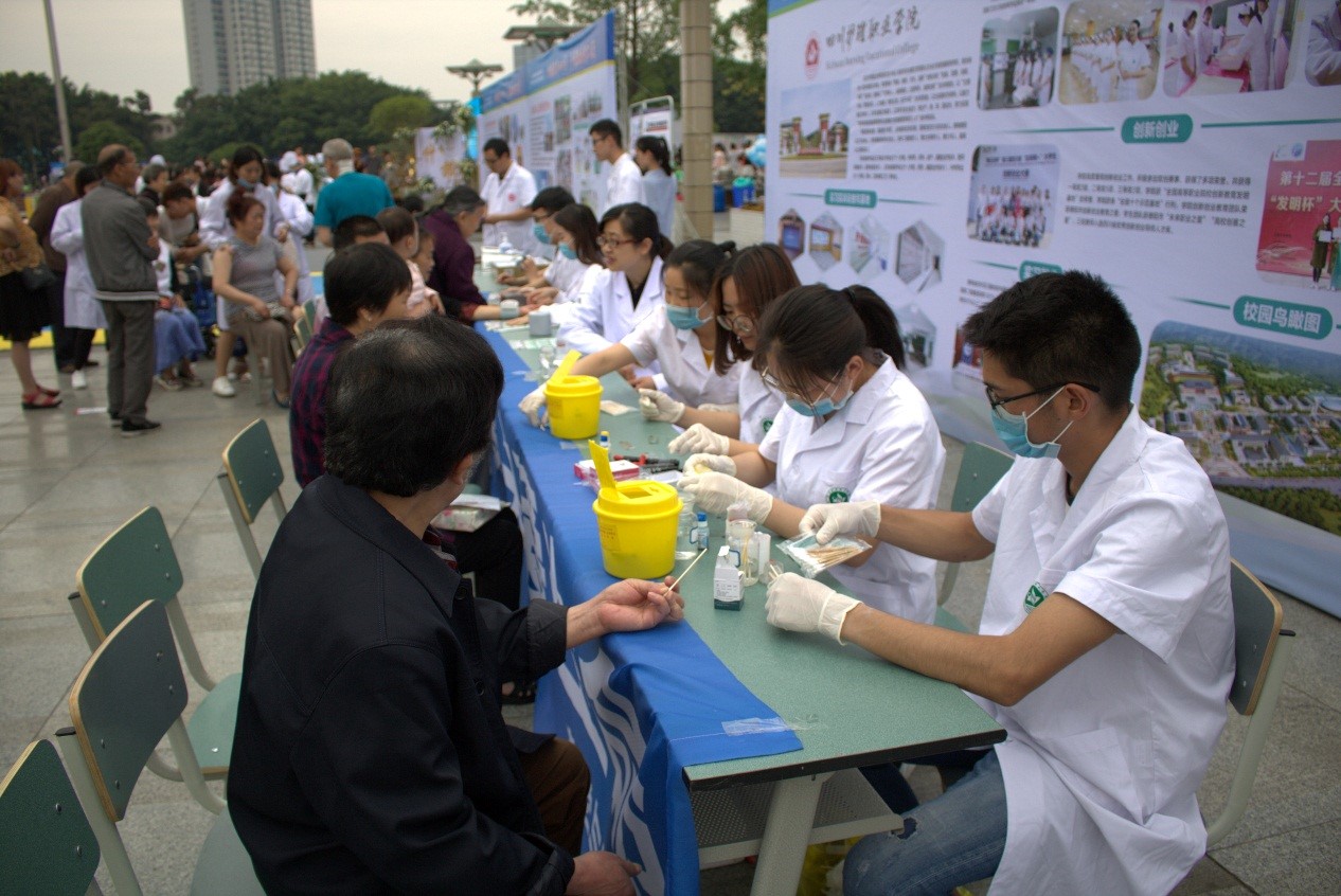 活动当天,我院30名学生组成方队参加了在德阳市文庙广场举行的启动仪式。部分师生参加了现场展示区活动。药学与检验系的老师和同学们开展血糖、血压、血型免费检测,并向市民发放健康小册子,宣传保健知识;医疗技术系及康复技术系的老师和同学们展现专业所长,为市民开展推拿、按摩、健康理疗服务;护理系同学标准、优雅、端庄的护理礼仪展演,充分展现了白衣天使的风采;健身气功“八段锦”的展示,诠释了源远流长的传统养生之道。师生热情、专业的服务获得现场市民一致好评,纷纷参与到活动中。