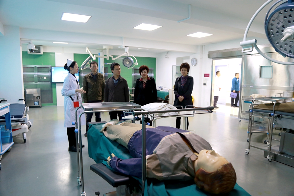 张峰组长重点实地考察了德阳校区医养项目、学院附属医院、成都校区护理实训中心建设情况,并详细了解了学院全面从严治党工作及党建工作开展情况。