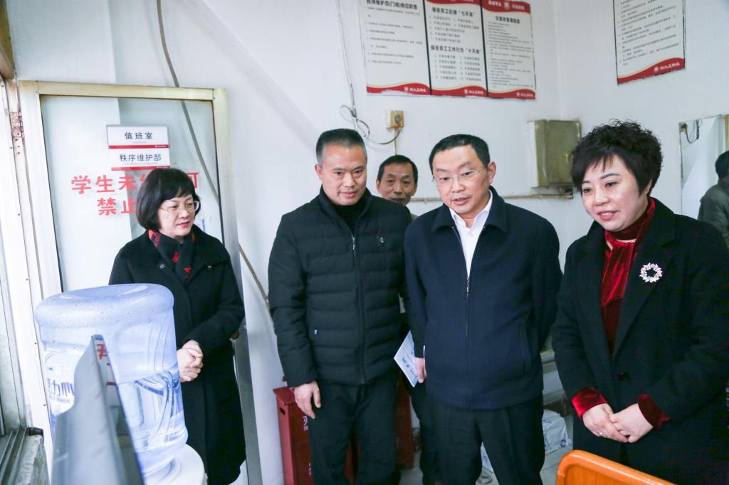 何主任一行在张先庚院长等陪同下,实地察看微型消防站、视频监控中心、配电房、门卫室等场所,了解学院开展今冬明春火灾防控、岁末年初安全生产风险防范、反恐等工作的开展、落实情况。何主任对学院在重视安全、落实安全工作等方面给予了肯定,对学生食堂、学生宿舍、网络中心机房、实验室毒麻药品及危化品等安全隐患高发的重点关键区域的管理提出具体指导意见,并勉励值班人员在寒假与春节期间,要以高度的责任心,认真履职,全力做好春节期间的值班工作。