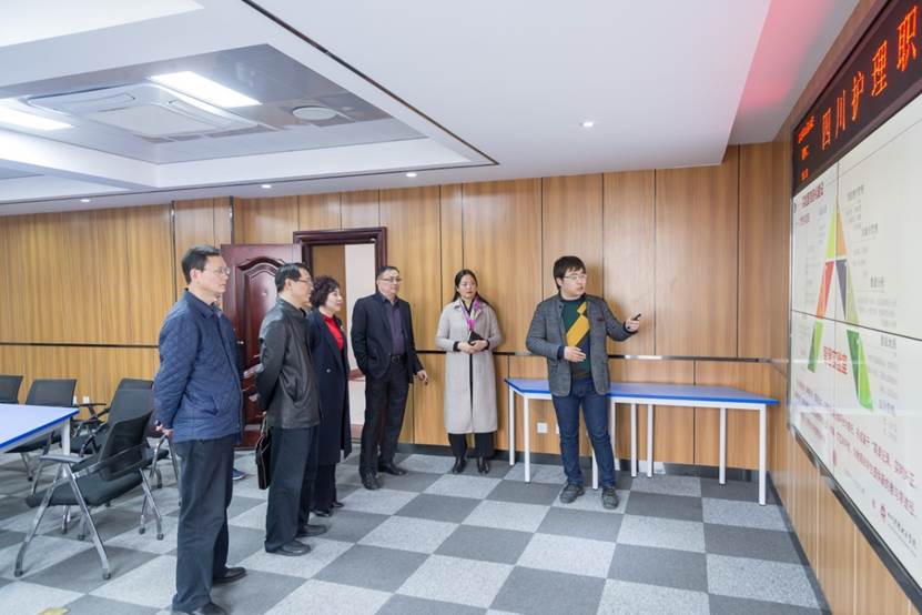 2019年3月19日省卫生健康委主任助理尹隆一行3人到我院调研指导产教融合工作。学院党委书记江涛、院长张先庚、副院长姚永萍及相关处室负责人参加调研。