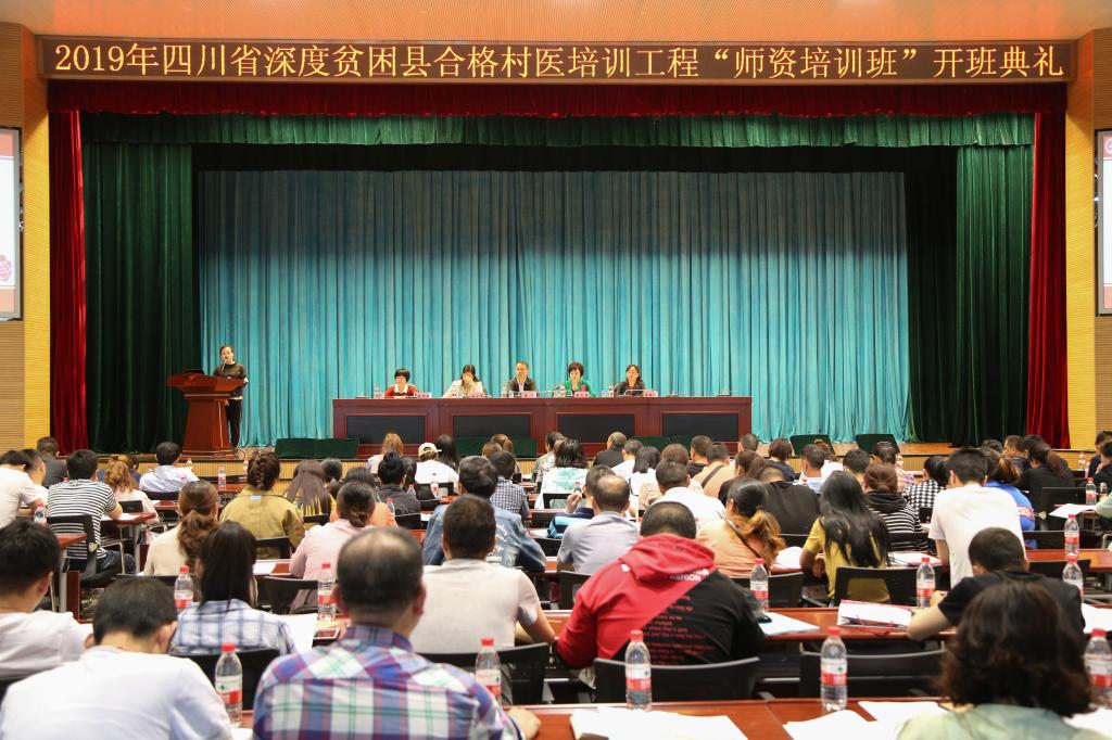5月13日上午,四川省深贫县合格村医培训工程“师资培训班”开班典礼在我院举行,四川省卫生健康委员会基层卫生健康处副处长黄武、学院院长张先庚教授、副院长姚永萍及来自甘孜州和乐山市的21个深贫县126名学员及21名县项目管理人员参加了此次开班典礼,开班典礼由姚永萍主持。