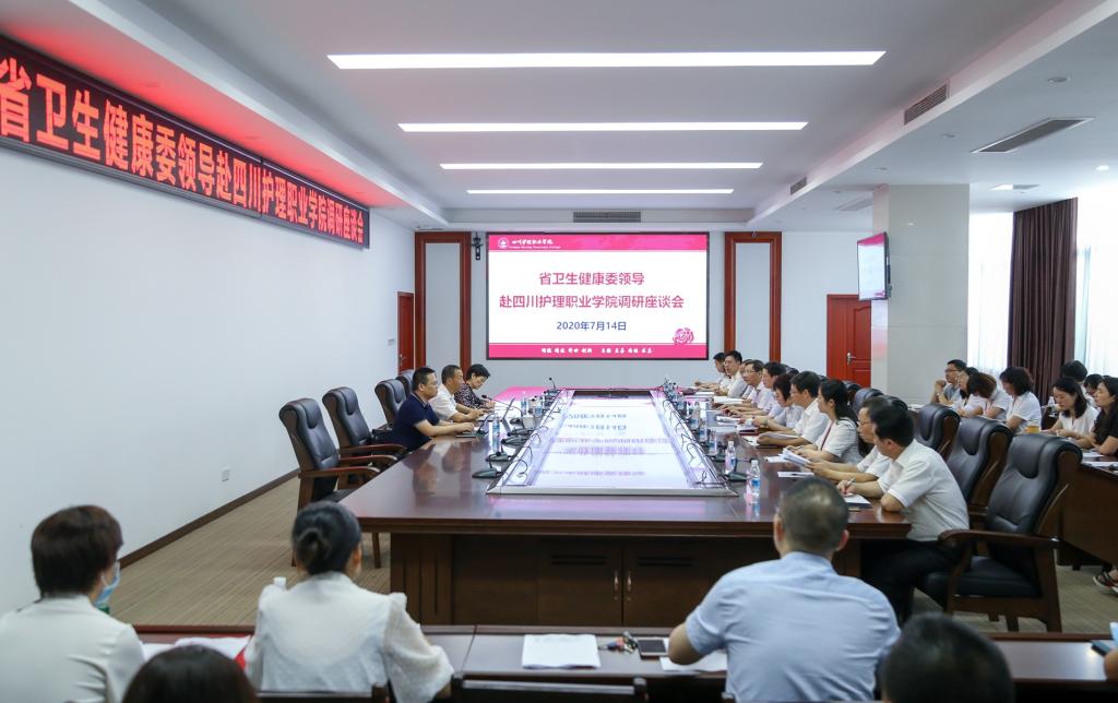 2020年7月14日,四川省卫生健康委员会党组书记沈骥一行到学院成都校区调研指导工作。学院全体院领导及中层干部、附属医院相关领导参加了调研。