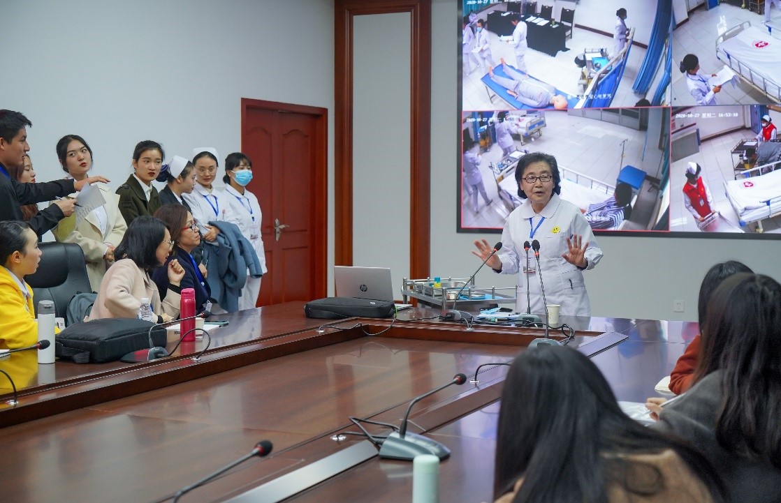 南丁格尔奖章获得者、此次选拔赛的裁判长成翼娟教授对学子们的技能展示进行了精彩点评,她深入剖析了本次技能大赛对全省高职院校护理专业发展的深远影响,强调了比赛是为了检验学校教学成果,引领高职院校适应行业发展趋势,促进护理专业教育教学改革,不断提高护理人才素质和能力,培养能够顺利进入护理岗位胜任临床工作的护理人才,真正起到以赛促练、以赛促学、以赛促教的目的。根据选手在赛场上的表现,成教授重点强调了护理工作中需要护士动心、动脑、动情进行精细化评估,再通过用物准备、环境准备、工作人员准备和患者准备,以保证护理工作的顺利完成,在整个护理工作中时刻关注患者或家属反应,做一名有温度、有情怀的白衣天使。同时,提醒院校教师要紧密结合临床实际,进行理论和实践教学的再设计,以患者为中心,注重护生评判性思维能力、职业防护意识、患者安全意识、护患沟通及人文关怀能力的培养。通过点评,帮助院校教师和选手理清思路,及时反思,总结自身优势和不足,为今后的教学改革和护理人才培养再添动力。