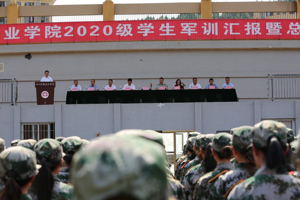 7月18日,我院2020级学生军训汇报暨总结表彰大会在德阳校区、成都校区举行。学院党委书记江涛,学院党委委员、副院长陈劲松,学院党委委员、学校副校长卢燕,德阳市旌阳区人民武装部部长刘强,四川省军区预备役管理处预备役中校付瑜以及学院相关职能部门负责人、各系书记出席大会。大会由副校长卢燕主持。