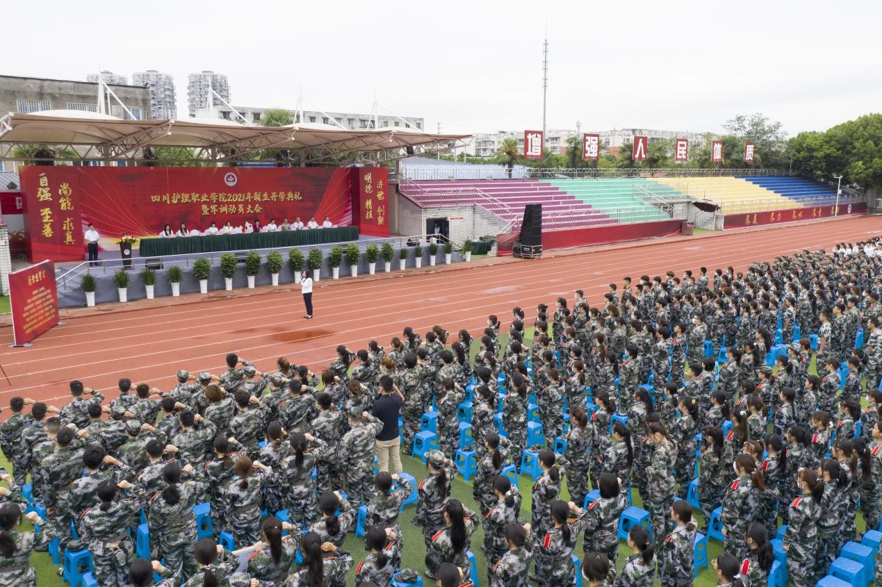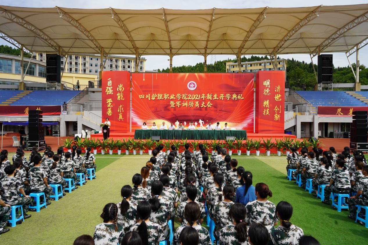 开学典礼暨军训动员大会燃起了全体新生的昂扬斗志,我们相信在全体师生不懈努力下,川护学子一定能以实现中华民族伟大复兴为己任,从“明德、精技、济世、创新”的校训中汲取前行力量,立大志、明大德、成大才、担大任,努力成为堪当民族复兴重任医药卫生健康人才。