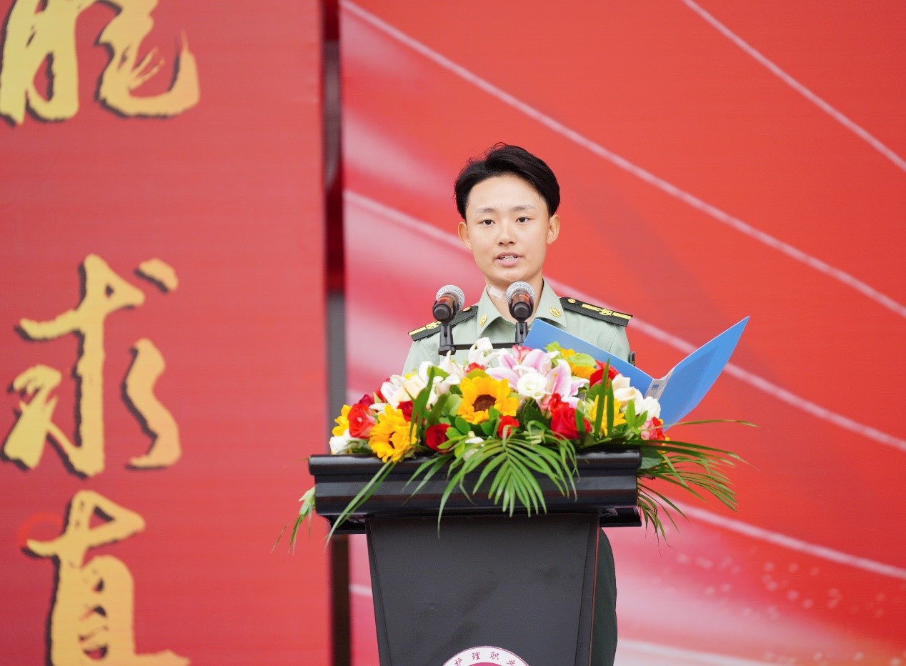 军训教官代表王琪瑶同志发言