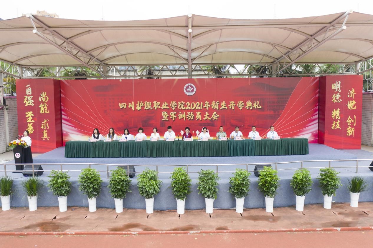 在建党百年的历史交汇期,在迈入“十四五”的开局年,在推动学校跨越式发展的关键年,9月6日,学院在成都校区、德阳校区隆重举行2021年开学典礼暨军训动员大会。学院党委副书记、院长张先庚教授,党委委员、副院长陈劲松、姚永萍,党委委员、省卫校副校长卢燕及相关职能部门负责人、各系部主任、书记、教师代表、2021级新生班级辅导员及3500余名新生参加开学典礼。