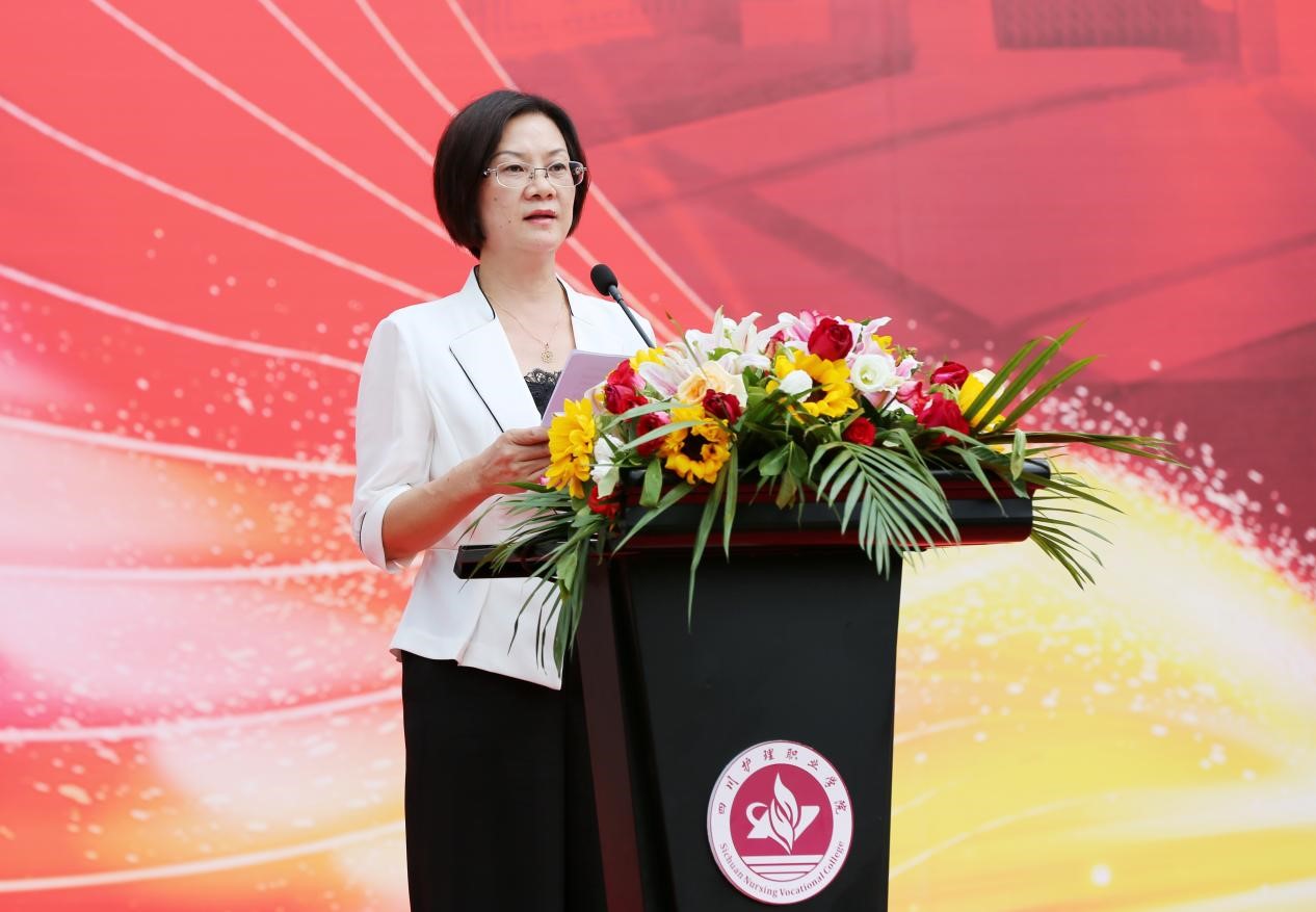 张院长在开学典礼上深情致辞,她代表学院向各位新同学表示了最衷心的祝贺和最热烈的欢迎!致辞中,同时她介绍了学院的发展前景、师资团队、教学改革、专业建设及近年取得的重大显著成绩,勉励同学们牢牢抓住时代发展的大好机遇,秉承“川护大爱”、擘画美好未来,解锁新知识、结识新伙伴、跨越新征程、成就新自我,成为德智体美劳全面发展的高素质卫生健康人才。