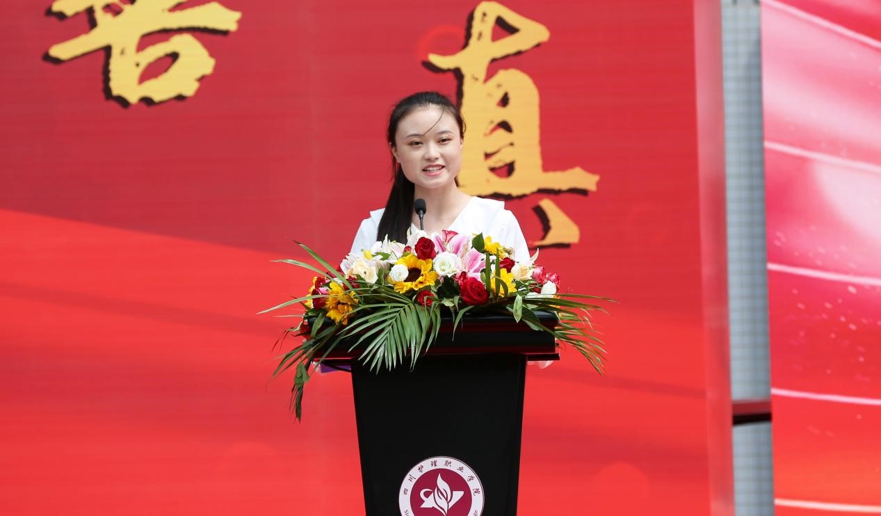 2021级新生代表康复技术系赵煊煊和护理系蔡茂丽表示作为一名川护新生,将努力锤炼品德意志,学好专业知识,掌握专业本领,用不断的努力与坚持,为成为一名合格的医学生而奋斗。