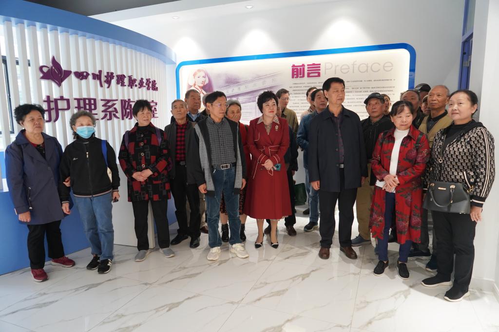 张先庚院长代表全院师生热烈欢迎退休老同志参观德阳校区,并亲自向大家介绍学院近年在人才培养、专业建设、校园文化、产教融合、服务社会、对外合作交流等取得的业绩。陪同退休老同志参观了学校新建护理实训中心、图书馆等。