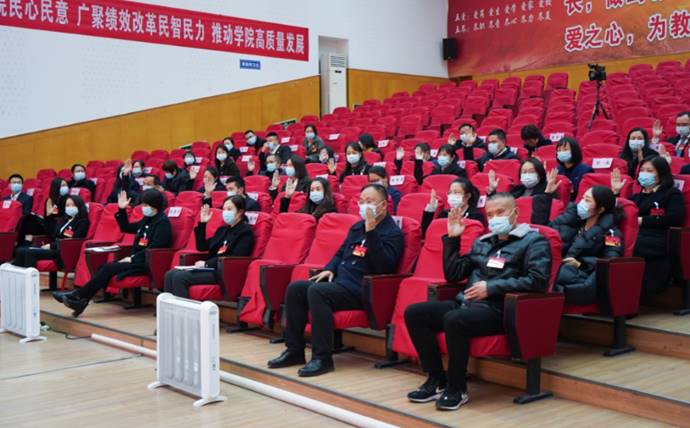 大会最后,学院党委书记江涛指出,本次职代会审议通过了学院绩效工资分配实施方案,标志着绩效工资改革试点取得重大进展。与会代表用心用情,畅所欲言,建言献策,彰显了政治意识、大局意识、责任意识、情怀担当和良好的民主管理素养。他强调,要真抓实干,做改革试点的推动者;正面引导,做改革政策的宣传员;以身作则,做改革发展的排头兵。