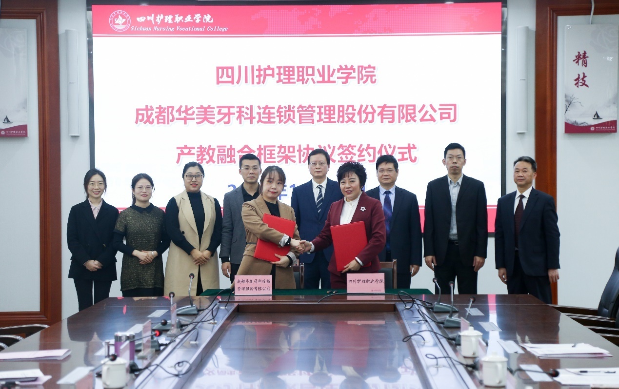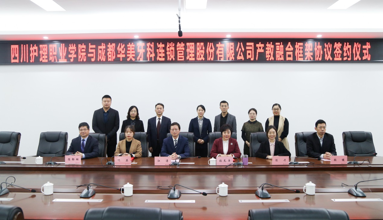 2021年11月30日上午,学院与四川新茂福斯特智慧城市管理服务有限公司、成都华美牙科连锁管理股份有限公司产教融合框架协议签约仪式在成都校区举行。四川新茂福斯特智慧城市管理服务有限公司董事长李蓓、成都华美牙科连锁管理股份有限公司副总经理付英,学院党委书记江涛、院长张先庚、副院长陈劲松、纪委书记张健及相关部门负责人出席签约仪式。签约仪式由副院长陈劲松主持。