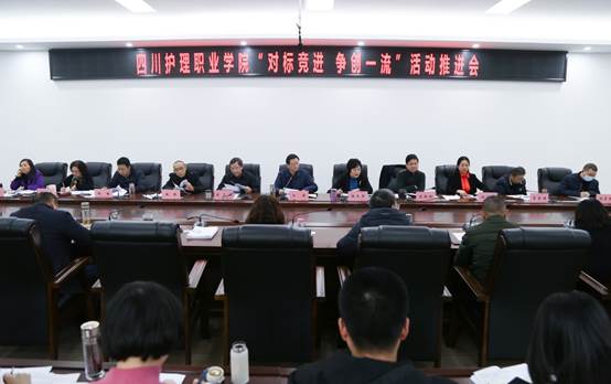 党政办主任邱赞汇报了学院“对标竞进、争创一流”活动整体开展情况、存在的问题及困惑和下一步打算,强调了省教育厅在深入开展“对标竞进 争创一流”活动中的要求。