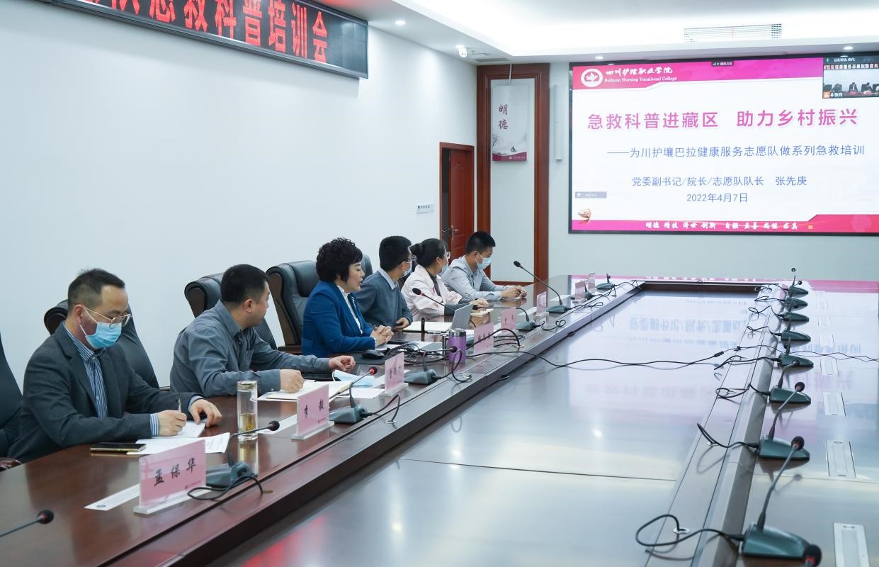 为积极响应健康中国战略号召,巩固拓展好bevitor伟德国际1946健康扶贫成果—民族地区基层卫生人才“1134”培养模式,充分发挥学院作为全国首批急救教育试点学校和四川省生命健康科普基地优势,以四川省科普活动月为契机,普及急救知识,增强自救互救的意识和能力,更好保障人民群众生命安全和身体健康。4月7日下午,学院院长张先庚教授为国家乡村振兴重点帮扶县壤塘县农牧民、学校教师开展了线上系列急救科普培训。学院相关职能部门负责人、系部主任等参会。