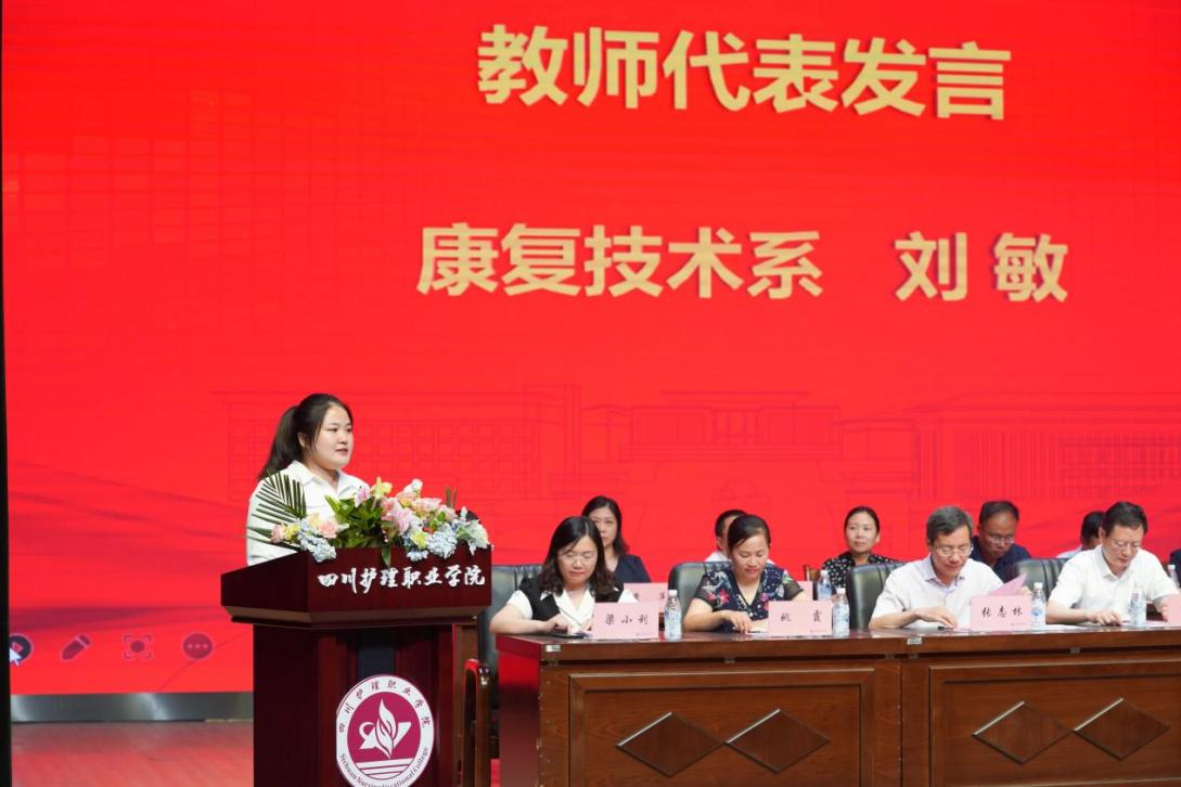 教师代表刘敏说,“职业教育前途广阔、大有可为、大有作为,作为职业院校的毕业生,你们要敢于做梦、勤于圆梦、勇于追梦。”寄语同学们以技立身、以技报国,以德修身、以德治学,成为党和国家需要的人,为祖国的卫生事业奋斗终身!