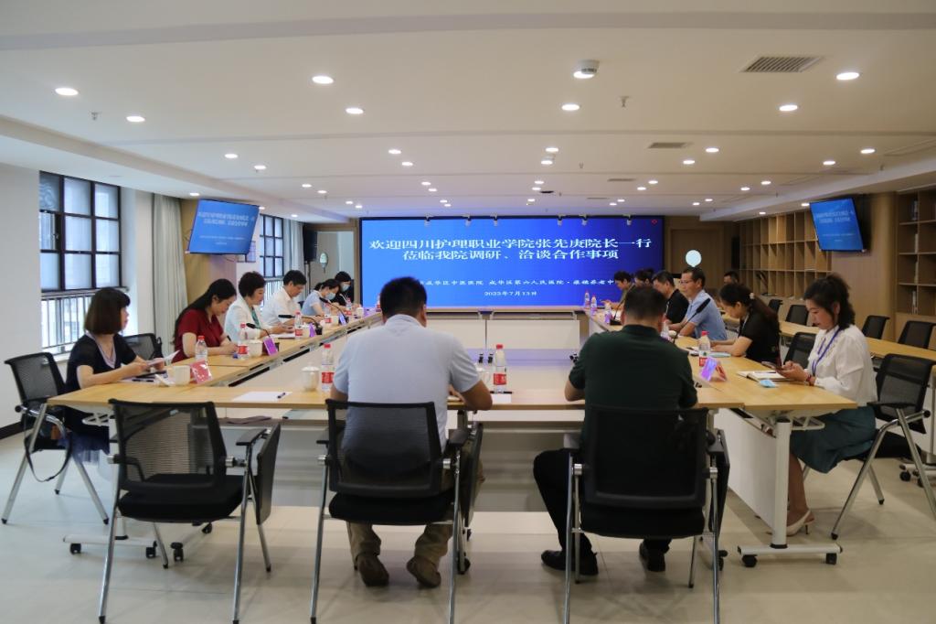 为深入贯彻落实习近平总书记来川视察重要指示精神,加速推进职业教育高质量发展,拓展卫生健康类人才就业渠道,深入开展产教融合,7月13日,学院院长张先庚教授组织带领考察小组赴成都市成华区中医医院(成华区第六人民医院)调研。学院副院长陈劲松、姚永萍,党政办公室、教务处、招就处、学科科研处、健康培训中心等相关部门人员参加调研。座谈会由成华区中医医院院长张聂主持。