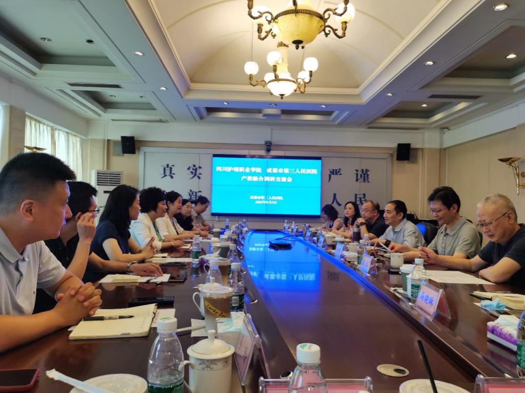 为深入贯彻习近平总书记来川视察重要指示精神,全面推进产教融合,加快推动学院高质量发展,8月3日,学院党委副书记、院长张先庚教授带队赴成都市第三人民医院开展产教融合调研交流。学院副院长姚永萍,市三医院党委书记徐俊波、院长刘早阳、副院长程弓、护理部主任陶岚,学院和医院相关职能部门负责人等参会,会议由市三医院副院长黄远航主持。
