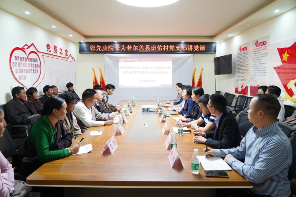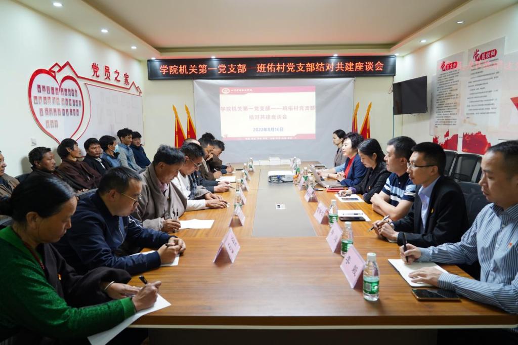 会上,班佑村党支部书记泽旺夺吉介绍了村支部组织建设情况;学院派驻班佑村第一书记唐上汇报了前期支部结对共建情况;张先庚代表机关一支部向班佑村党支部赠送书籍。