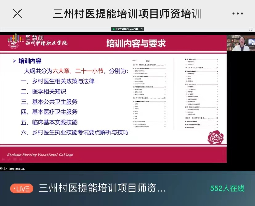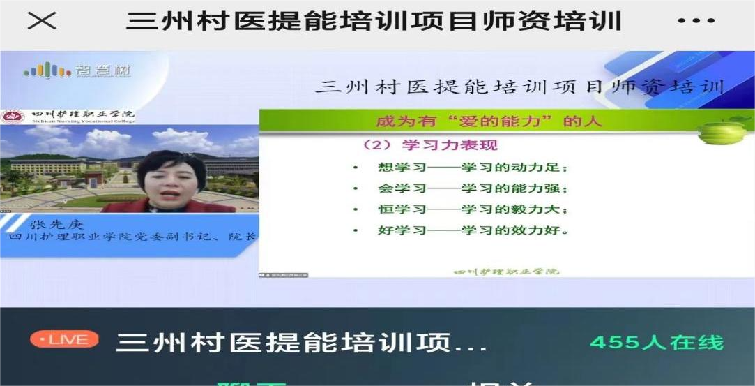 为推动省委、省政府和省卫生健康委员会关于“三州”村医提能培训项目的落地落实,聚焦国家乡村振兴重大战略,贯彻习近平总书记来川视察重要指示精神。我院经过两轮院校“三州”村医提能培训项目“双师型”结构化师资集体备课,于10月14日至16日开展了为期3天的2022年“三州”村医提能培训项目师资培训,来自“三州”的卫生学校、职业院校、全科中心和州(县)人民医院、乡镇卫生院和社区卫生服务中心的2000余名基层医疗卫生人员参加了本次线上培训。