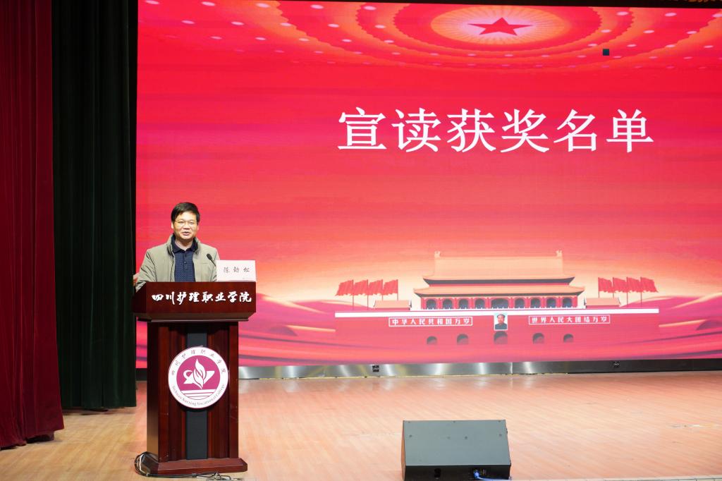 陈劲松副院长宣读了获奖名单。经过激烈角逐和现场评审,来自康复技术系的陈彬杰同学演讲的《缅怀历史血满腔 吾辈青年绽光芒》获得一等奖。高宇奇、刘颖婷同学获得二等奖,陈泳金、刘亚军、蒲月同学获得三等奖,袁凤梅、刘梓蓓、黄燕、古承雪同学获得优秀奖。