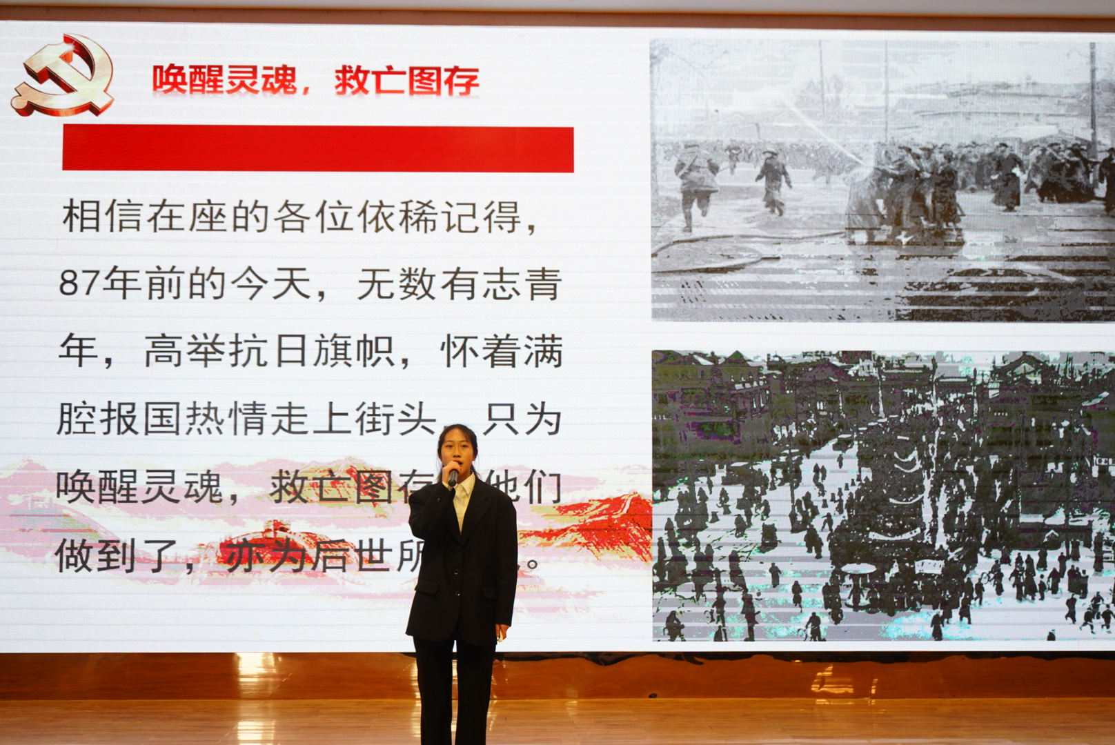 在全国上下认真学习贯彻党的二十大精神和“一二·九”学生爱国运动八十七周年之际,为激发广大青年学生爱党、爱国情怀,培育和弘扬民族精神,12月9日,学院两校区线上线下同步举办了以“学习党的二十大 同心筑梦绽芳华”为主题的纪念“一二·九”学生爱国运动演讲比赛,学院党委副书记、院长张先庚,党委副书记张志林,党委委员、副院长陈劲松出席活动,宣传部、学生工作部(团委)、各系、思政部负责人、辅导员及全院在校学生观看比赛。活动由学生工作部副部长(主持工作)申洋主持。