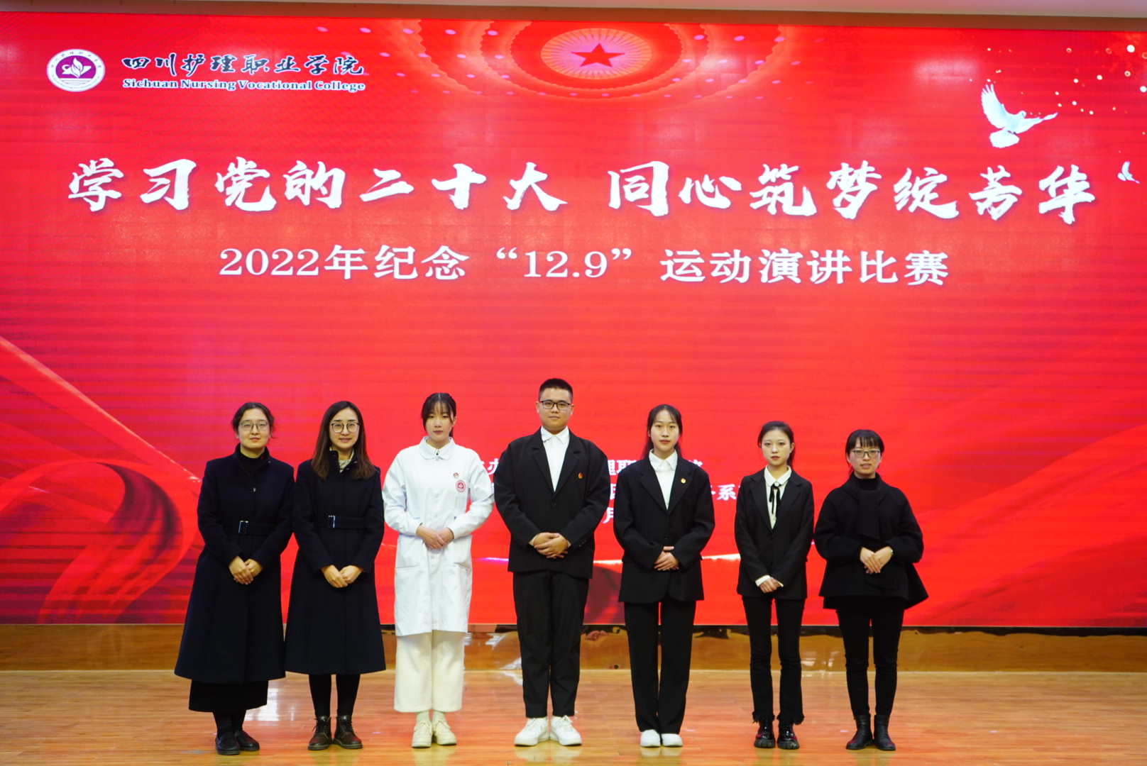 活动结束后,与会领导、老师们与参赛选手们亲切合影。此次比赛,不仅增加了青年学生的爱国情怀,展现了学生的风采,丰富了同学们的课余生活,而且有助于帮助川护学子继承和发扬爱国主义精神,在参与中感受党史教育,在讲述中纪念爱国壮举,勇于承担起振兴中华的历史使命,坚守卫生报国初心,为健康四川、健康中国建设贡献青春力量,为实现中华民族伟大复兴的中国梦不懈奋斗。