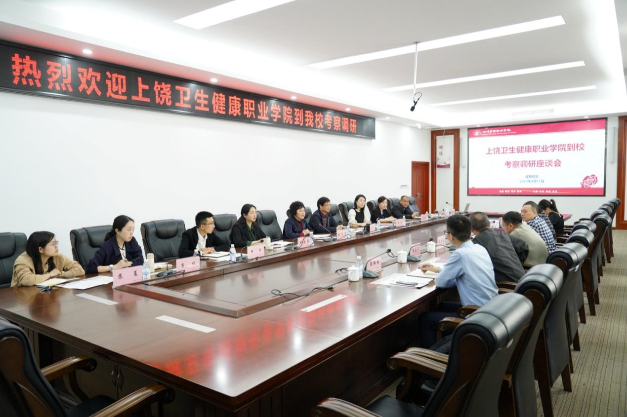 张庆良校长就上饶卫生健康职业学院基本建设、师资队伍、人才培养等方面情况进行了介绍,对我院近年来取得的办学成果予以高度评价。他表示,学院在顶层设计、内部治理、人才培养、师资队伍建设等方面的经验,对上饶卫生健康职业学院这所新建同类院校具有重要的借鉴、启发意义,希望双方进一步加深了解,搭建学习交流平台,分享高职院校建设发展经验。
