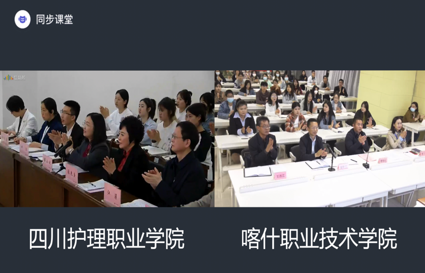 本次同步课堂由全国教书育人楷模、国家级在线精品课程《老年护理学》负责人张先庚教授主讲。在云端课堂上,张先庚以任务为导向,以人口老龄化现状与趋势、养老政策、老年护理特点及工作要求为主线,结合真实案例和学院在老年护理人才培养方面的改革实践,融入思政元素,精心设计了多个互动环节,应用智慧化教学手段,使两校学生充分融入课堂,教学内容丰富,深入浅出,课堂气氛活跃,让同学们在云端课堂亲历一场不一样的精彩。本次同步课堂得到了喀什职业技术学院师生的积极反馈,他们表示同步课堂内容精彩,重点突出,巧妙地融入思政元素,加强了职业素养教育,获益匪浅。本次课堂是喀什职院教学创新的又一课,打破了学院围墙的限制,通过张院长的精彩课堂,使她们增长了知识,开拓了眼界,这样的同步课堂优质、高效、充满新知识、新信息、新技术,渴望今后能有更多的交流与互动。