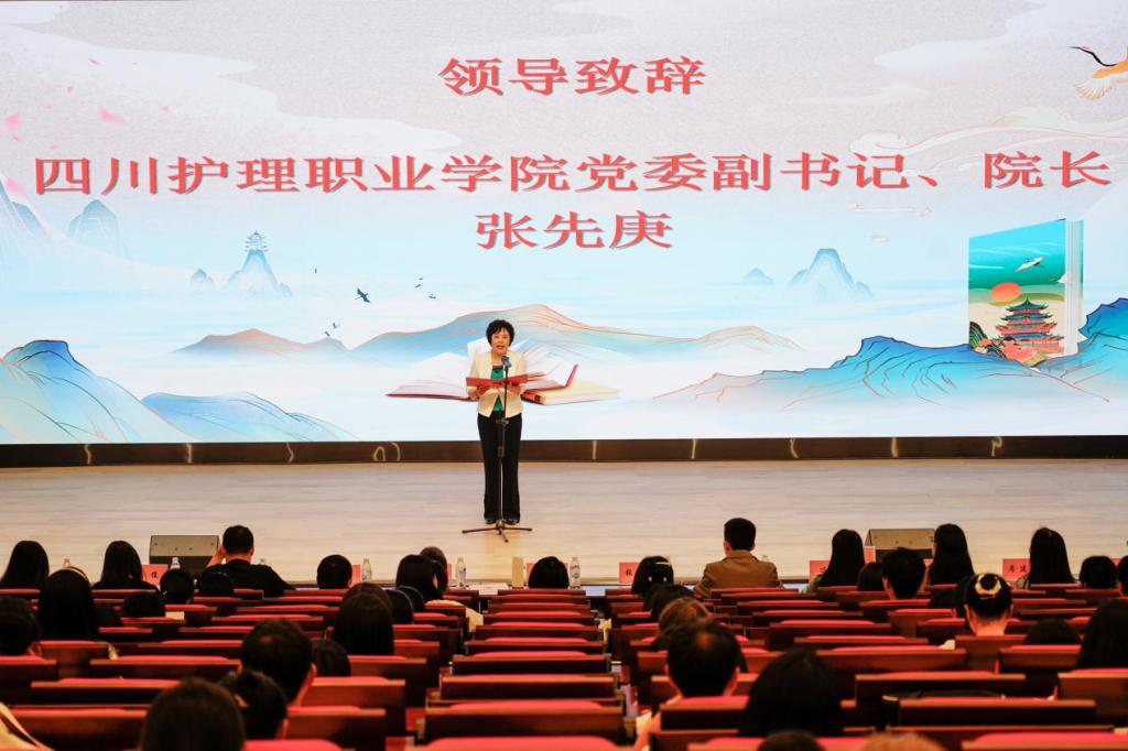 为深入学习贯彻党的二十大精神,推进书香校园建设,在第28个“世界读书日”到来之际,4月20日下午,学院邀请德阳市诗词楹联学会在德阳校区演艺大厅共同举办了“阅读中华经典 传承大爱精神”—第28个“世界读书日”阅读会。学院院长张先庚,德阳市委统战部一级调研员、德阳市诗词楹联学会会长涂惠及会员代表,学院学生工作部、护理系等负责人、教师与学生代表共300余人参加活动。