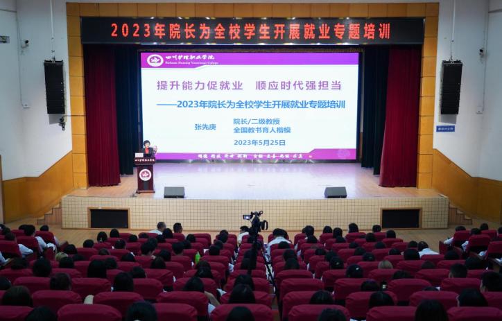 为深入贯彻落实党的二十大精神,进一步做好就业指导工作,促进学生更高质量更充分就业,5月25日,学院院长、全国教书育人楷模张先庚教授在成都校区多功能厅以“提升能力促就业 顺应时代强担当”为主题,为全院师生上了一堂精彩纷呈的就业指导课,11000余人线上线下同步听课,讲座由学院副院长梁小利主持。