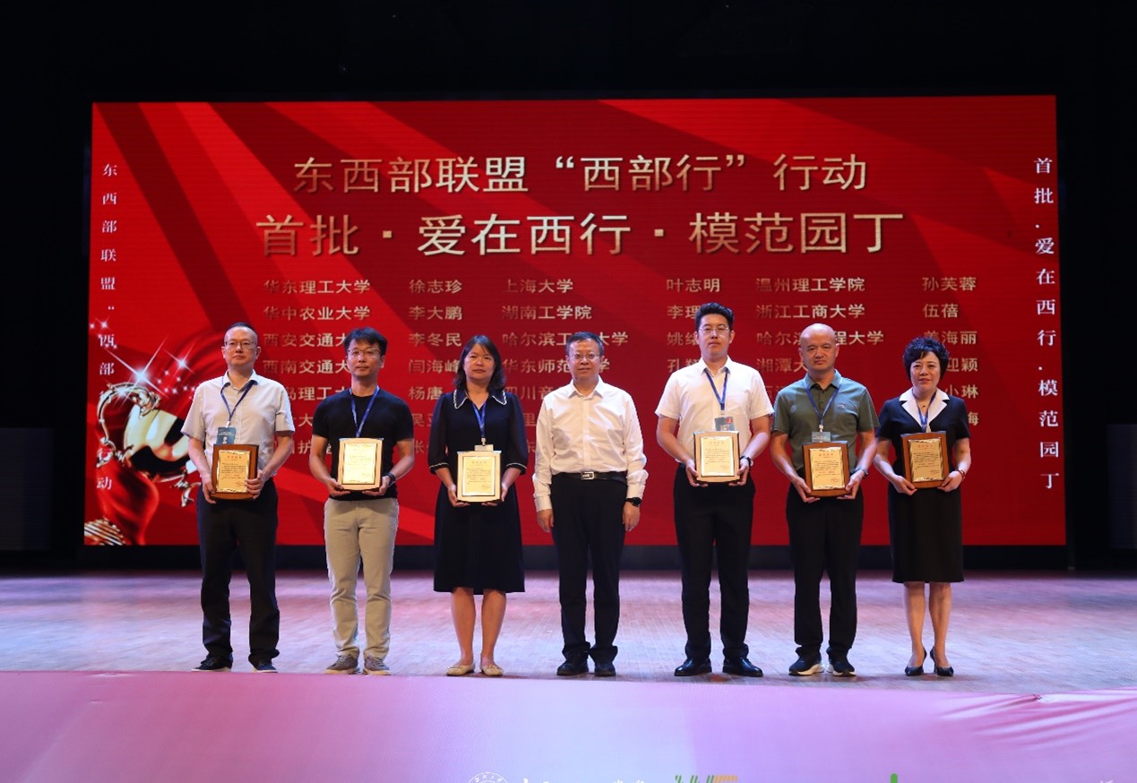 为进一步扩大东西部高校合作机制,8月15日,东西部高校课程共享联盟在新疆阿克苏举办第二届“慕课西行”推进会暨AI赋能新形态教学改革研讨会,学院院长张先庚作为“职教西行”代表率队参会并接受采访,会上,张先庚院长获评首批“爱在西行”模范园丁教师,该荣誉从全国609门“西行课程”中评选,全国仅18所本科院校和2所职业院校教师获得。