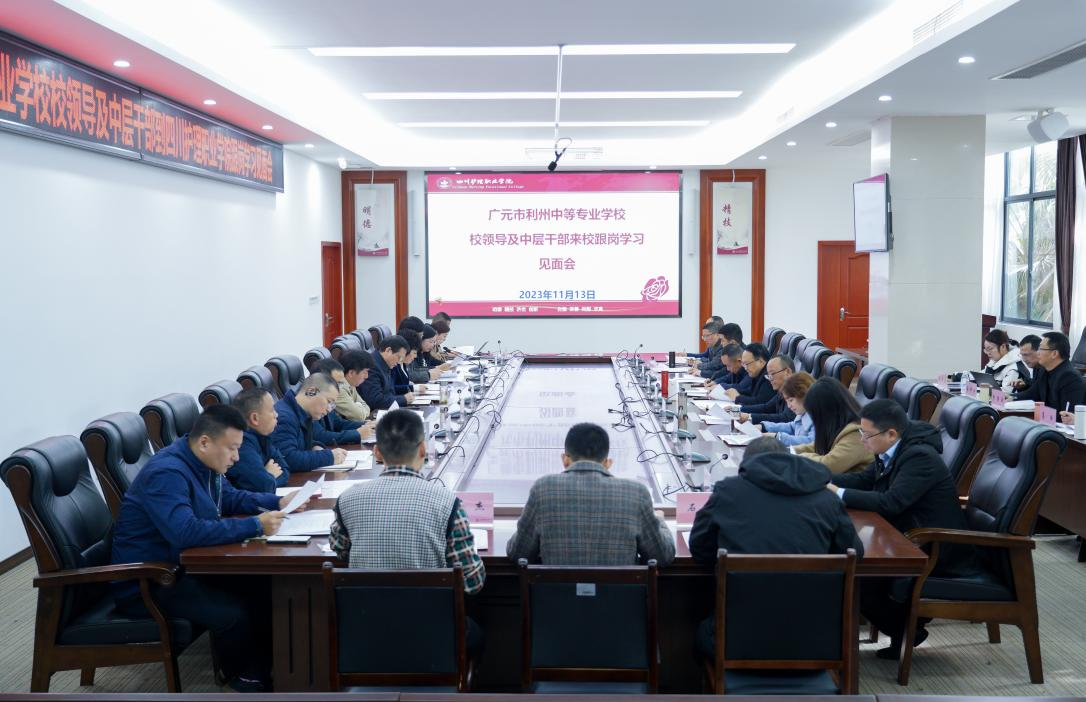 为深入学习贯彻落实党的二十大精神和习近平总书记来川视察重要指示精神,加快建设教育强国、教育强省,在前期双方学校深度交流合作的基础上,11月13日到17日,广元市利州中等专业学校党委书记赵刚带队25名学校领导干部分两批次到我院进行为期一周的跟岗学习活动。学院党委书记江涛,院长张先庚,党委副书记彭博文,副院长陈劲松,党委副书记、纪委书记罗小强,副院长梁小利及相关部门负责人参加活动。