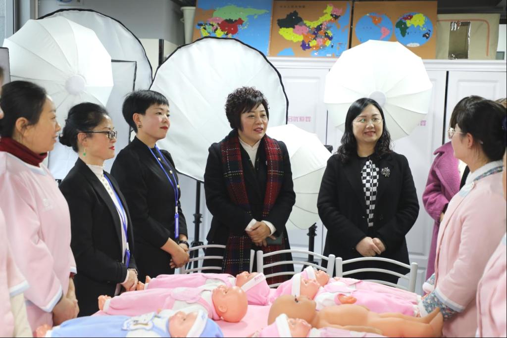 张先庚一行在公司总经理王小燕的陪同下实地考察,调研了企业培训体系建设、母婴照护技能实训室和公司核心业务开展情况,了解了现代家政服务行业发展现状,并与一线从业者进行了深入沟通交流。