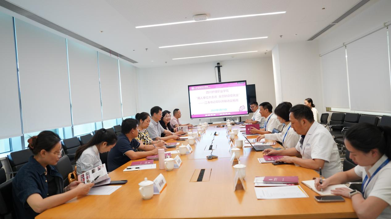 江涛就学院基本情况进行简要介绍,并对医院的硬件建设、人性化的服务理念、精细化的管理给予了高度评价。他表示,通过本次调研交流,一是深入了解了医药卫生领域社会办医的发展新趋势,不断探索学院办学育人的新方向;二是为学院人才培养增设优质实习基地,积极推进校企深度合作,建立长效人才培养机制,实现医院、学院、学生三方共赢;三是深入推进“访企拓岗”工作,加强校企合作,助力学院毕业生更高质量、更充分就业。