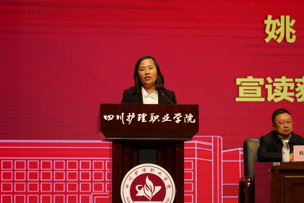 学院党委委员、宣传部部长姚霞宣读表彰文件