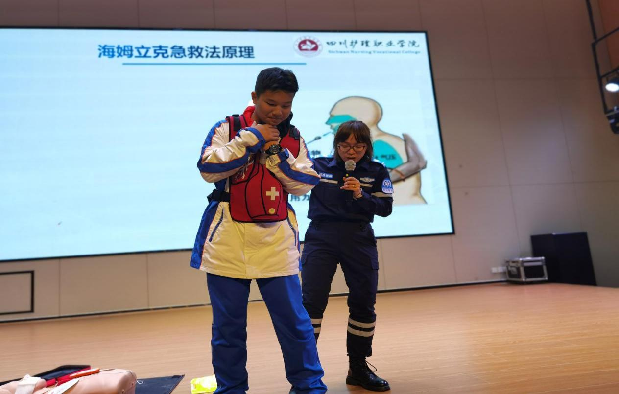学院曾学燕副教授为师生开展急救知识培训和急救演练。培训内容包括心肺复苏术、海姆立克急救法等急救技能,以及针对特殊情况的急救处理措施。在座师生通过理论学习、示范观摩和实操练习,增强了应急救护意识和自救互救水平。