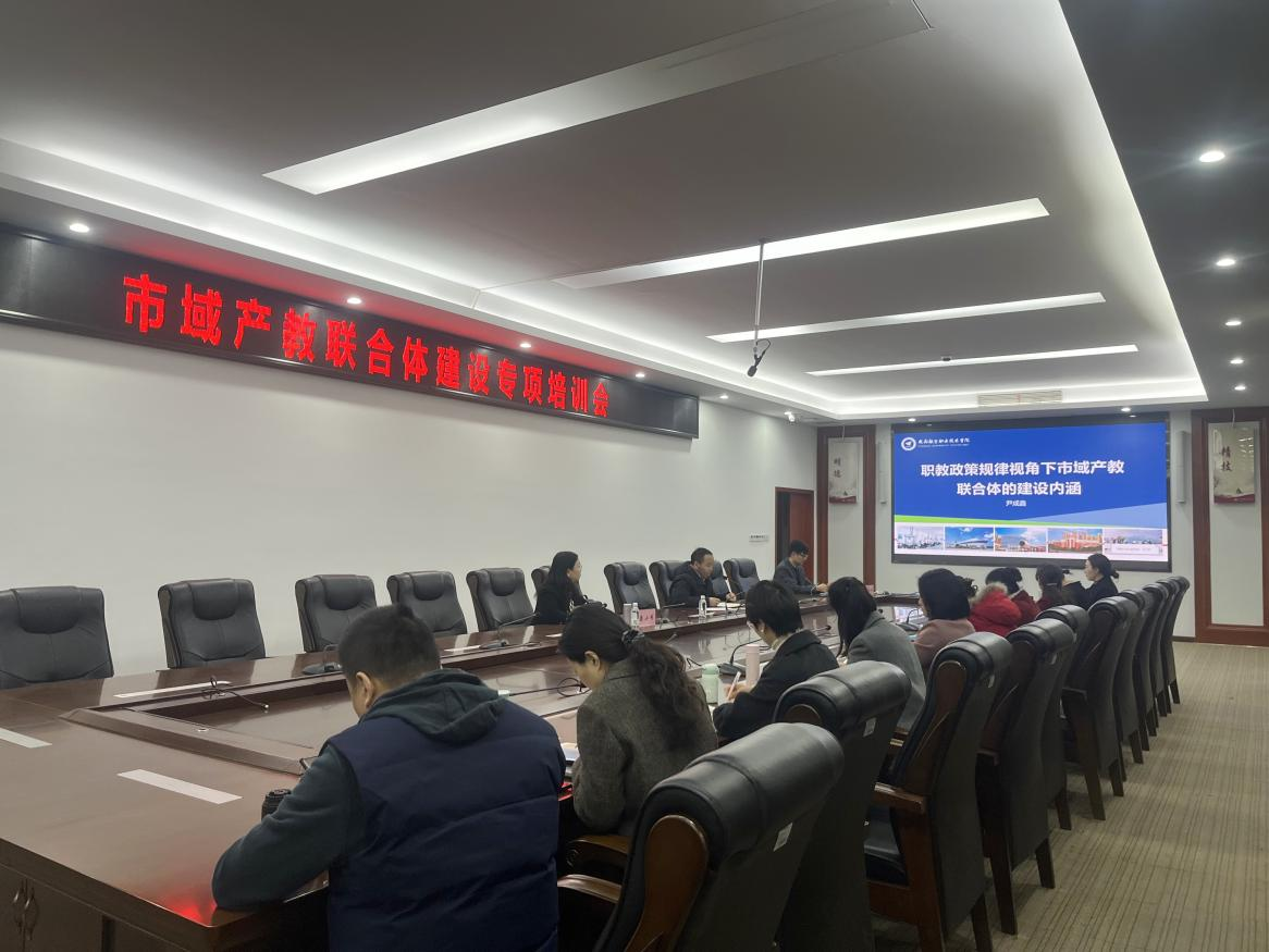 为深化职业教育体系改革,推进产教深度融合,赋能人才培养,促进区域大健康产业发展,加速推动“成都市大健康市域产教联合体”建设,12月3日,学院邀请成都航空职业技术学院发展规划处处长、高职教育研究所所长尹成鑫到校开展市域产教联合体建设专项培训,学院副院长梁小利出席,会议由产教学院副院长李毅主持。
