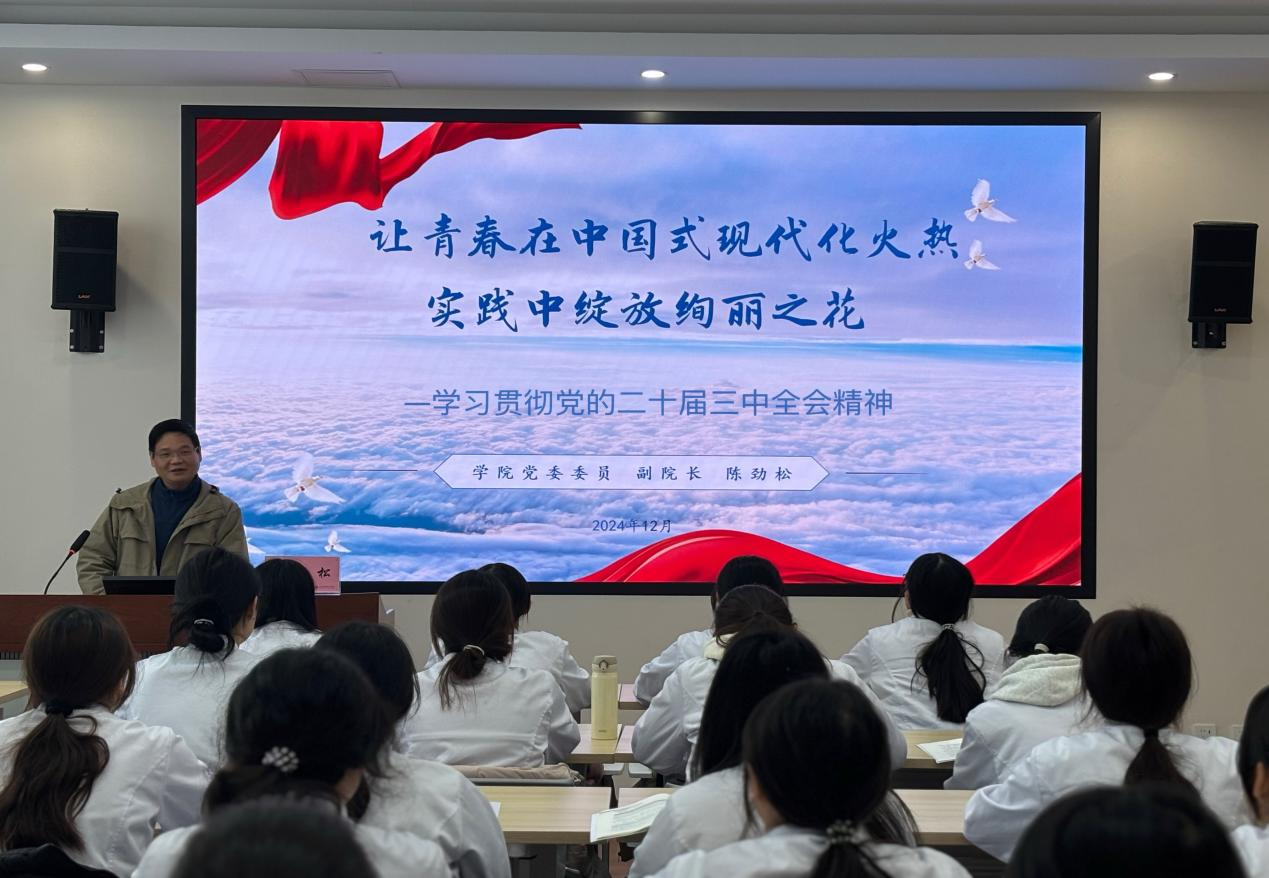 为助力莘莘学子筑牢信仰基石,精准把握时代脉搏,12月20日,学院党委委员、副院长陈劲松为联系班级2024级康复治疗技术大专1班的学生们讲授形势政策课。