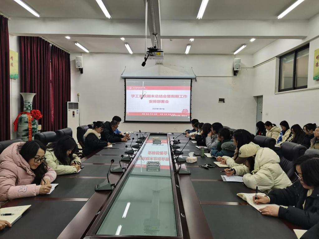 会议“聚焦4大重点,实现10大突破”汇报了2024年学工(团委)工作业绩、存在问题和下一步工作计划,并对2025年学工(团委)重点工作进行讲解,对放假前后学生工作安排、学生安全等安排部署。