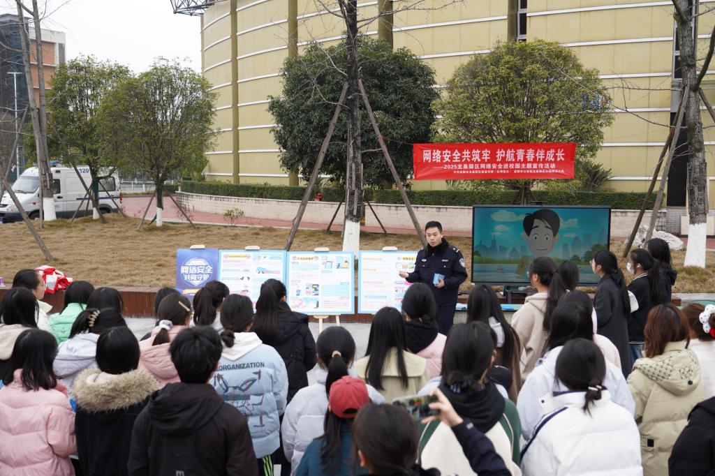 为增强学生防范电信诈骗、网络盗窃等风险的能力,2月27日,学院联合成都市公安局龙泉驿区分局网安大队、龙泉驿区委宣传部(区网信办)在成都校区开展“网络安全共筑牢,护航青春伴成长”网络安全进校园主题宣传活动。