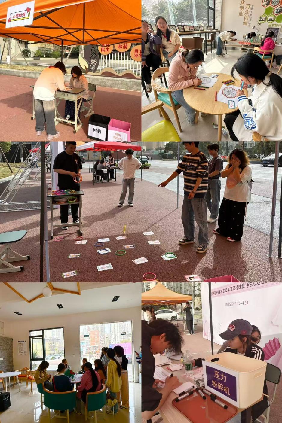 游园会设置“心灵树洞”匿名倾诉站、“情绪圈圈乐”情绪感知游戏、“压力粉碎机”压力宣泄装置、“情绪曼陀罗”艺术疗愈工坊及“心理健康知识闯关”问答互动体验区,采用多维互动形式引导参与者实现压力释放、情绪管理。