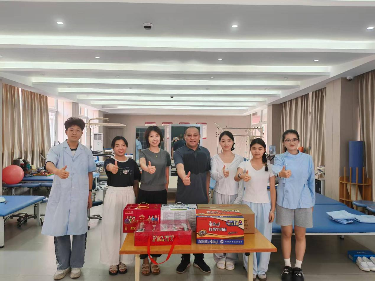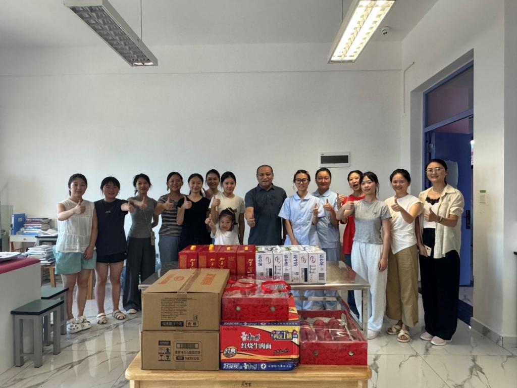 工会一行深入训练场了解护理系、医疗技术系、康复技术系各团队备战进展,询问师生们的生活所需与实际困难,并送上精心准备的防暑降温物资与营养补给。