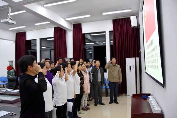 活动最后,全体党员面对鲜红的党旗,庄严地举起右手,重温了入党誓词,并且宣读了教师誓词。党员们纷纷表示,通过此次主题党日活动,重唤当初入党时的真诚与激情,进一步加强了责任意识和宗旨意识,将牢记自己的职责,更加坚定、深入地努力践行对党的承诺。
